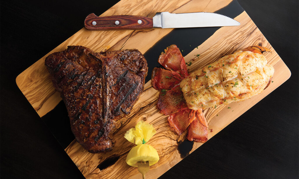 Lobster mashed potatoes are the side of choice – one that can steal the show. Or go lighter with garlic truffle cauliflower.